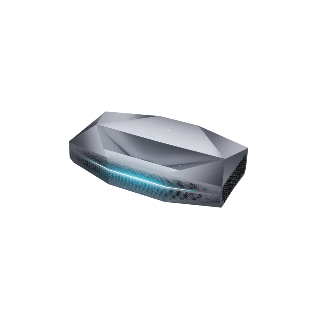 Physically, the Aetherion embraces its high-end ambitions with a design that reads straight out of science fiction. Between its angular shape, sharp lines, and layered surfaces, it looks less like home theater gear and more like a small spacecraft parked at the edge of my living room. Compared to the portable projectors I’ve been testing lately, it’s a behemoth and one that makes little effort to blend into my home decor. Measuring 22.13 × 12.72 × 5.49 inches and weighing in at 19.3 pounds, it’s also not about to be carried outside for a backyard movie night (at least not by me).