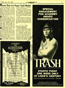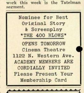 This is of the movies that made François Truffaut a household name among film lovers. Truffaut didn’t need a fancy full page ad to make his mark — this was a small notice placed low on an inside page.