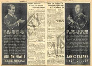 Warner Bros. found a clever way to tout the high-profile stars in two of its top-tier pictures released in 1933: William Powell in “The Kennel Murder Case” and James Cagney in “Lady Killer.”